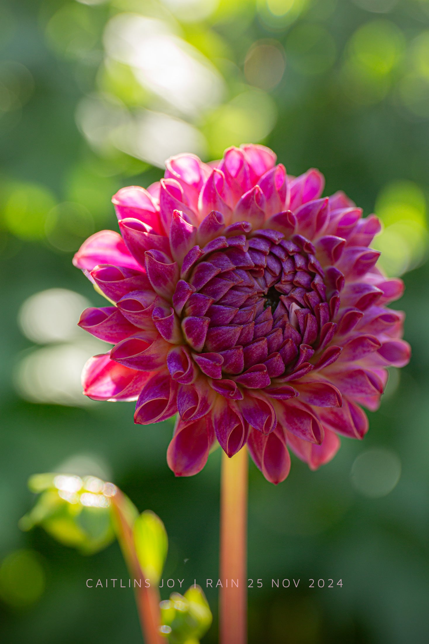 Dahlia 'Caitlin’s Joy' is a captivating miniature ball-type dahlia that enchants with its ever-evolving color palette and elegant form. A dynamic blend of metallic raspberry, coral pink, peach, and subtle lavender and apricot undertones, creating a shifting color palette throughout the season.