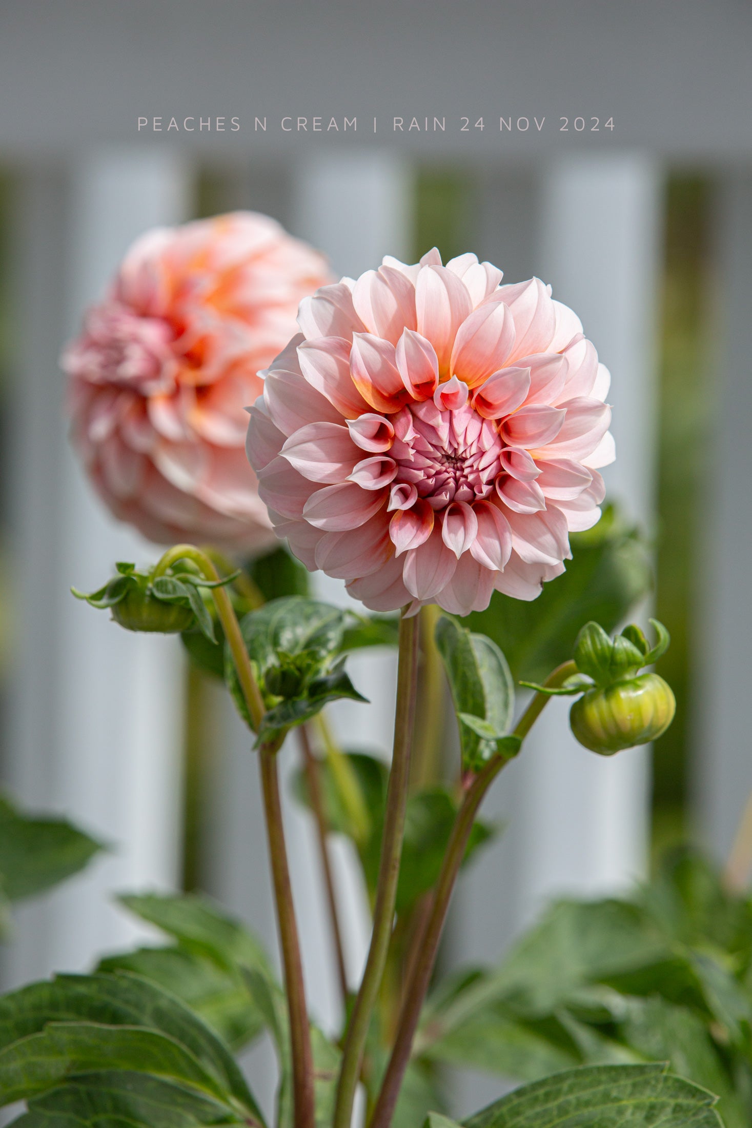 大丽花“桃子奶油”是一款迷人的正式装饰品种,以其鲜艳柔和的花朵和花园多功能性而闻名。随着天气和花期的变化,其色调会在桃色、雪宝橙、杏色和腮红色之间变换。